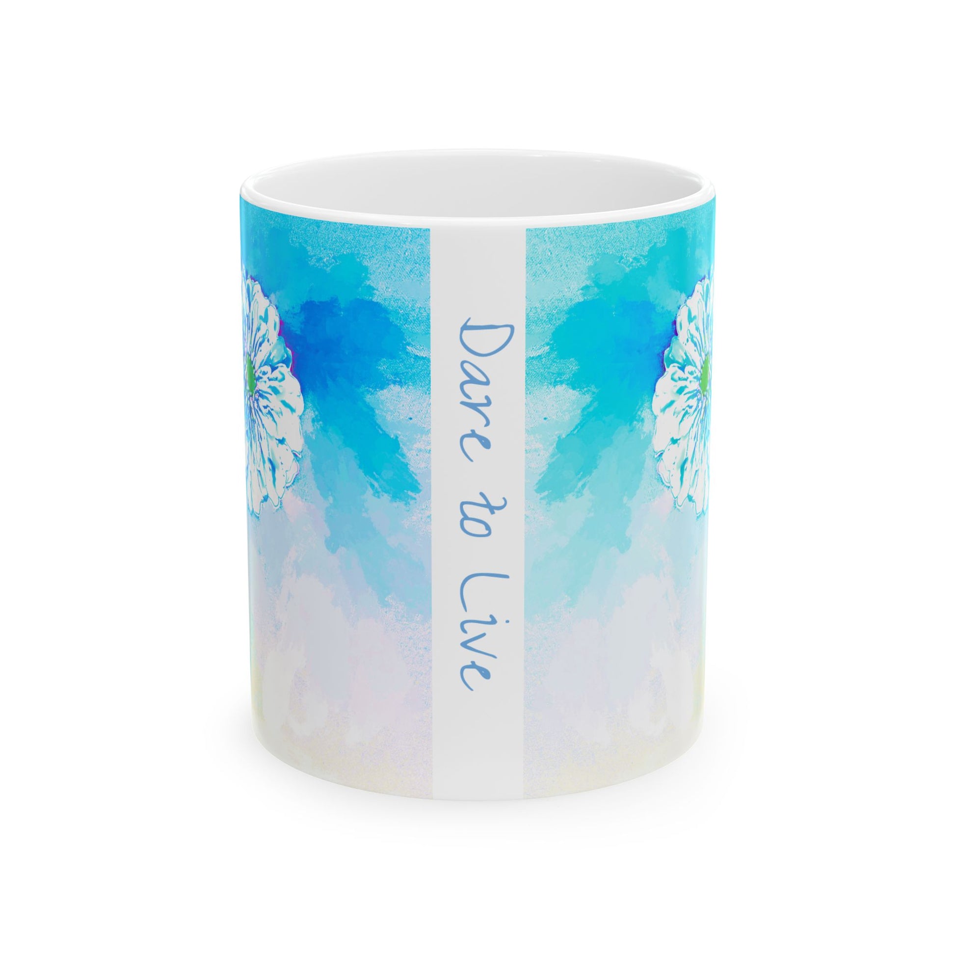 Zinnia Color Splash Mug Aqua “Dare to Live”