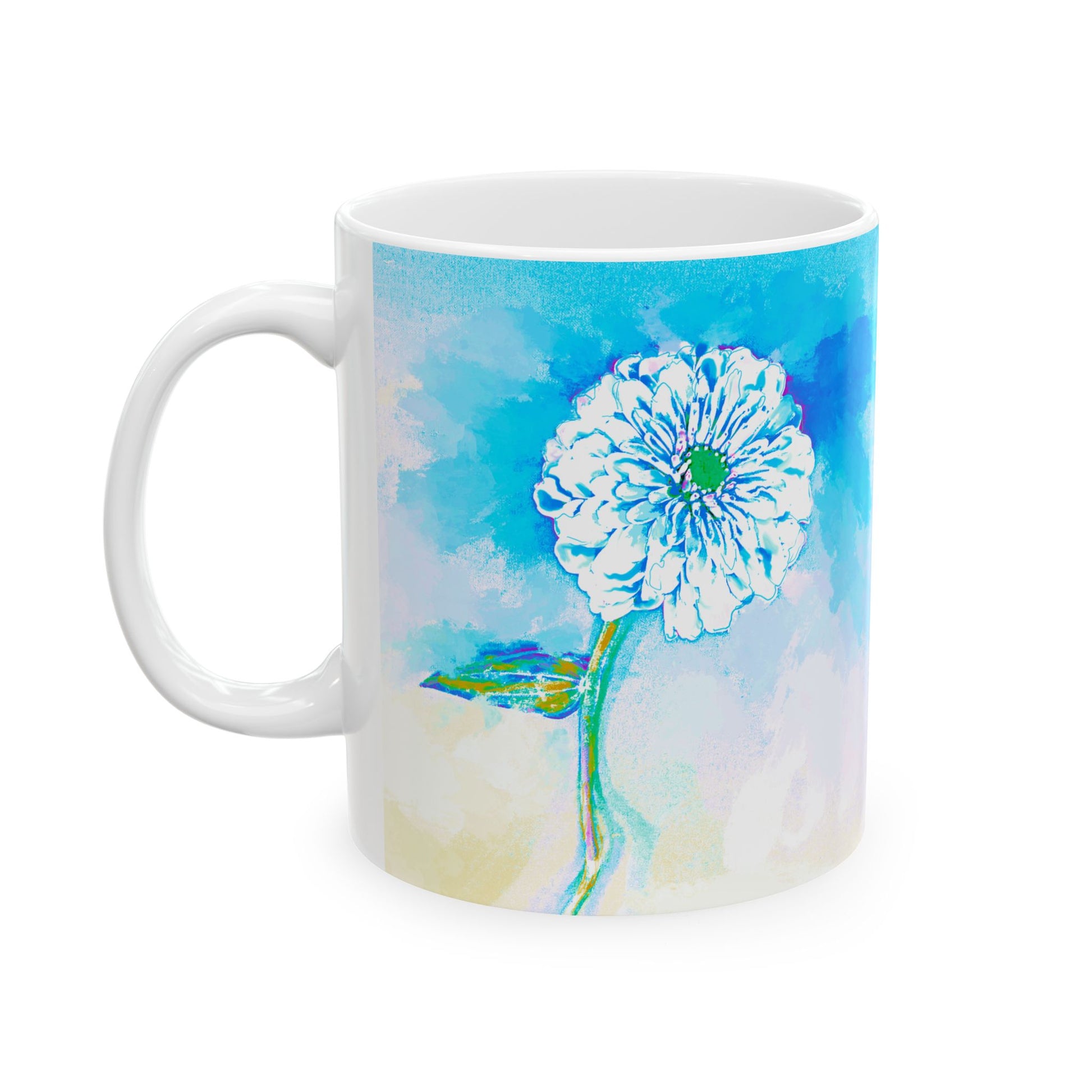 Brighten your morning ritual or afternoon pause with this lively ceramic mug featuring a hand-drawn bouquet of abstract zinnias. Each bloom bursts with expressive color, adding not only a touch of whimsy to your cabinet, but also a bold reminder about the beauty and brevity of life.