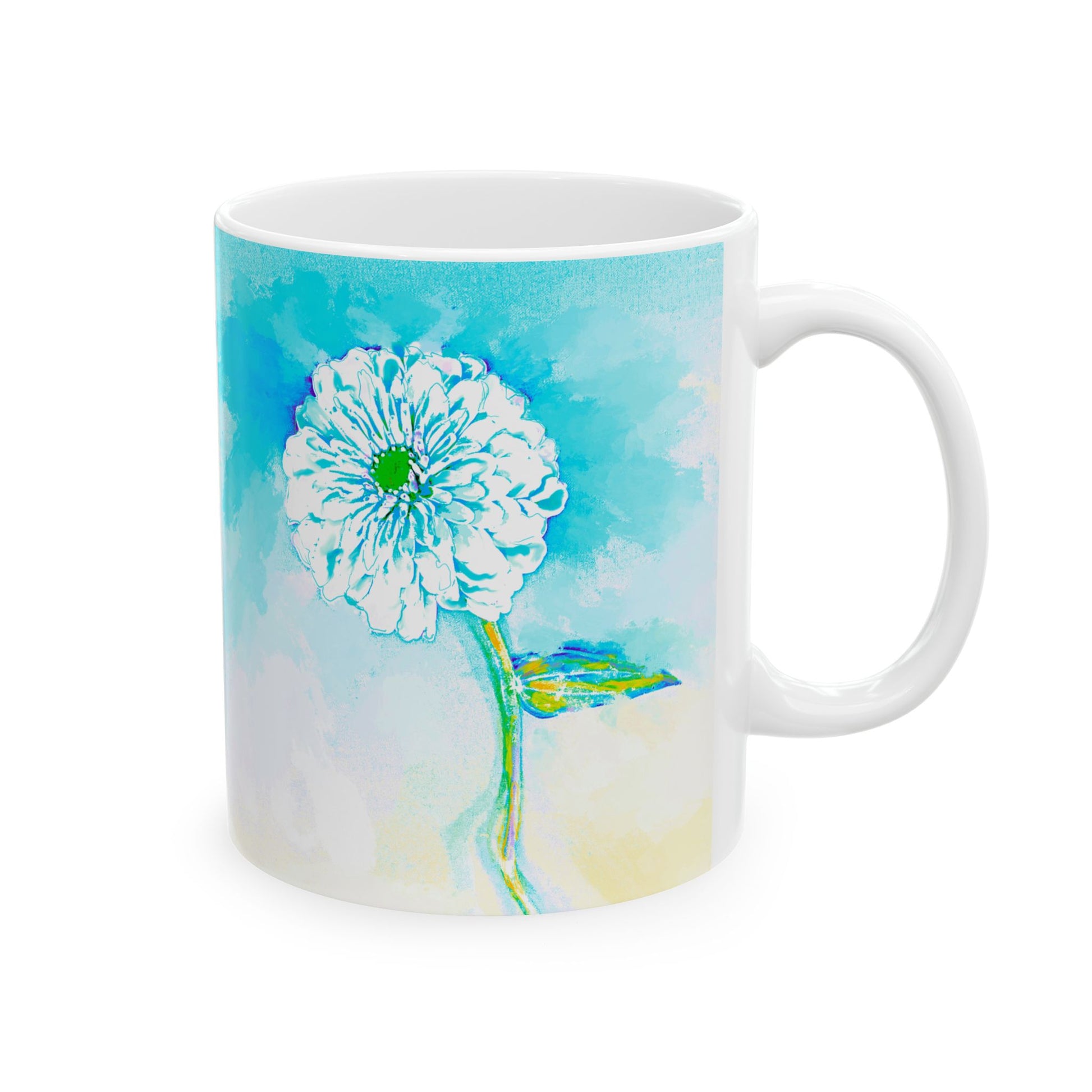 🌼 Periwinkles Design – “Abstract Zinnias & Conversation” Ceramic Mug