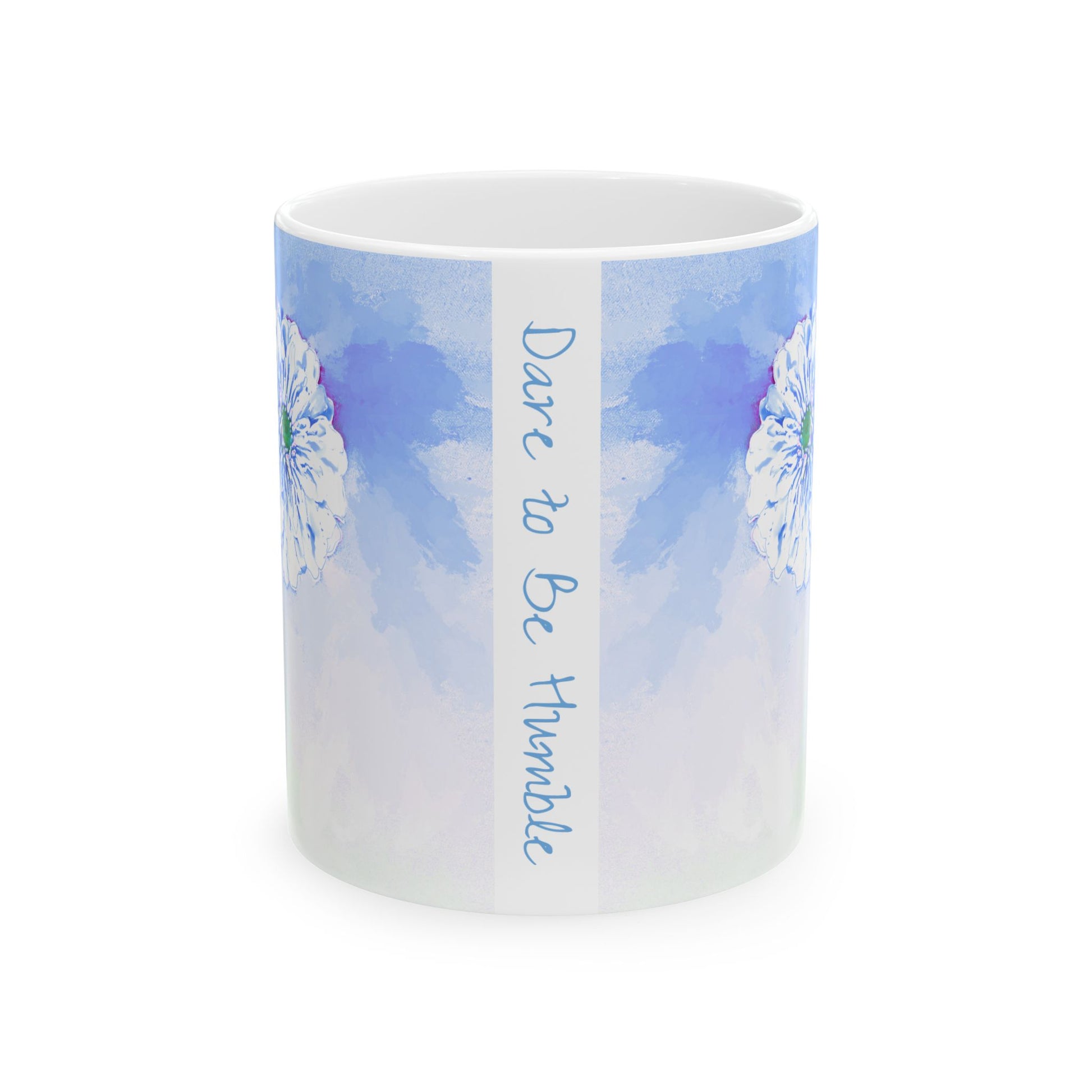 Zinnia Color Splash Mug Blue “Dare to Be Humble”