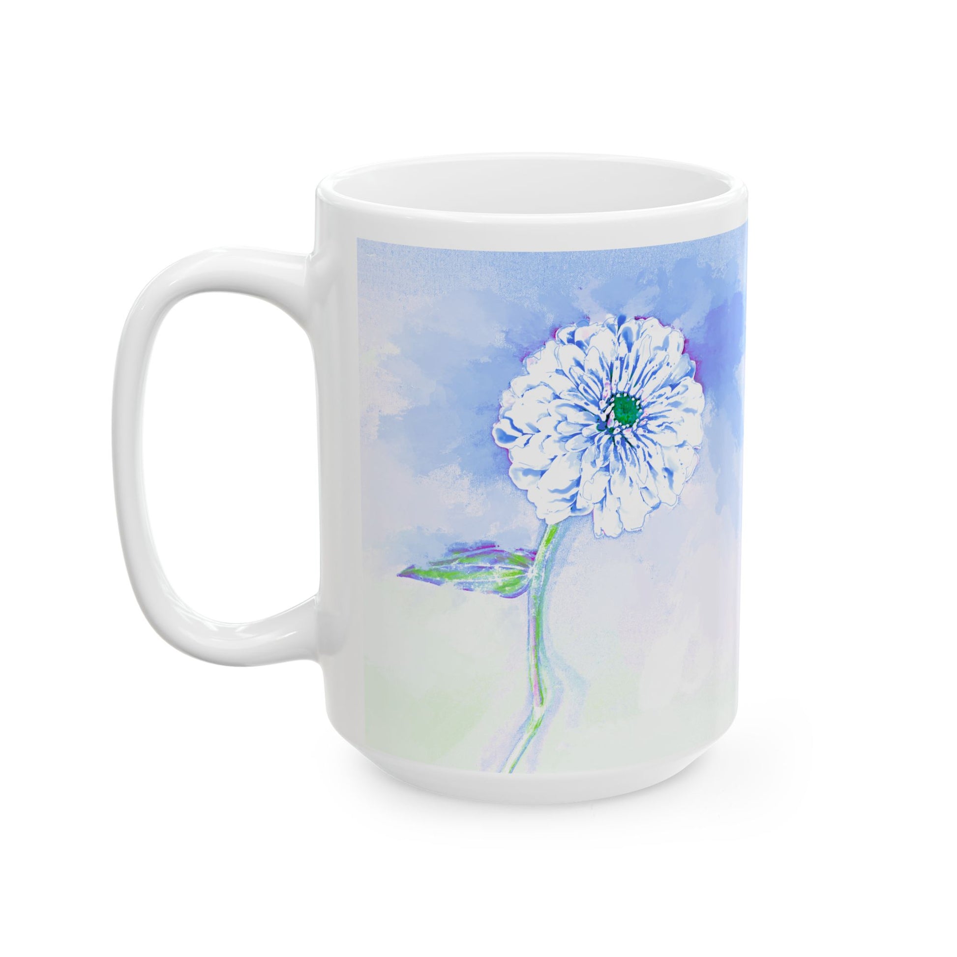 🌼 Periwinkles Design – “Abstract Zinnias & Conversation” Ceramic Mug