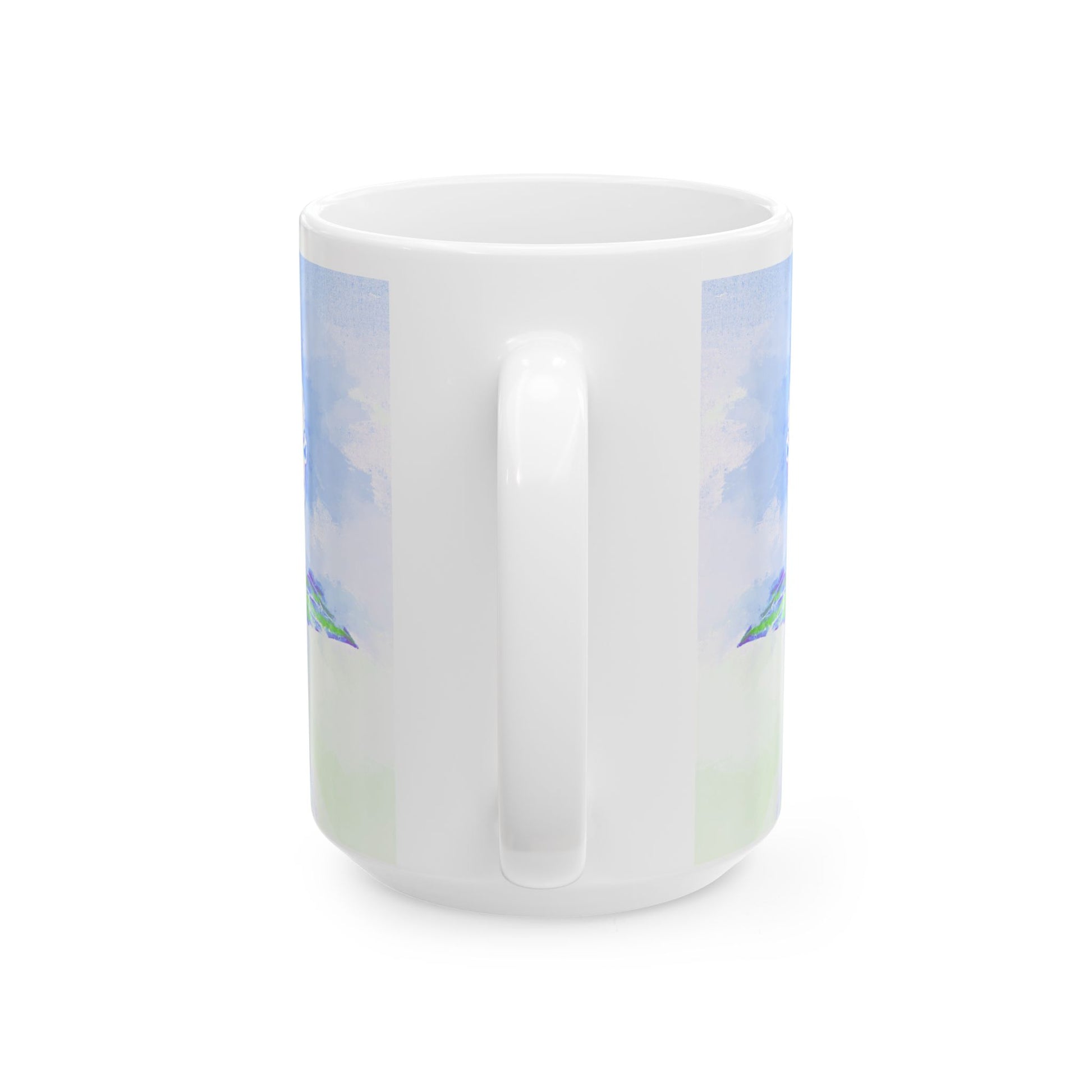 🌼 Periwinkles Design – “Abstract Zinnias & Conversation” Ceramic Mug