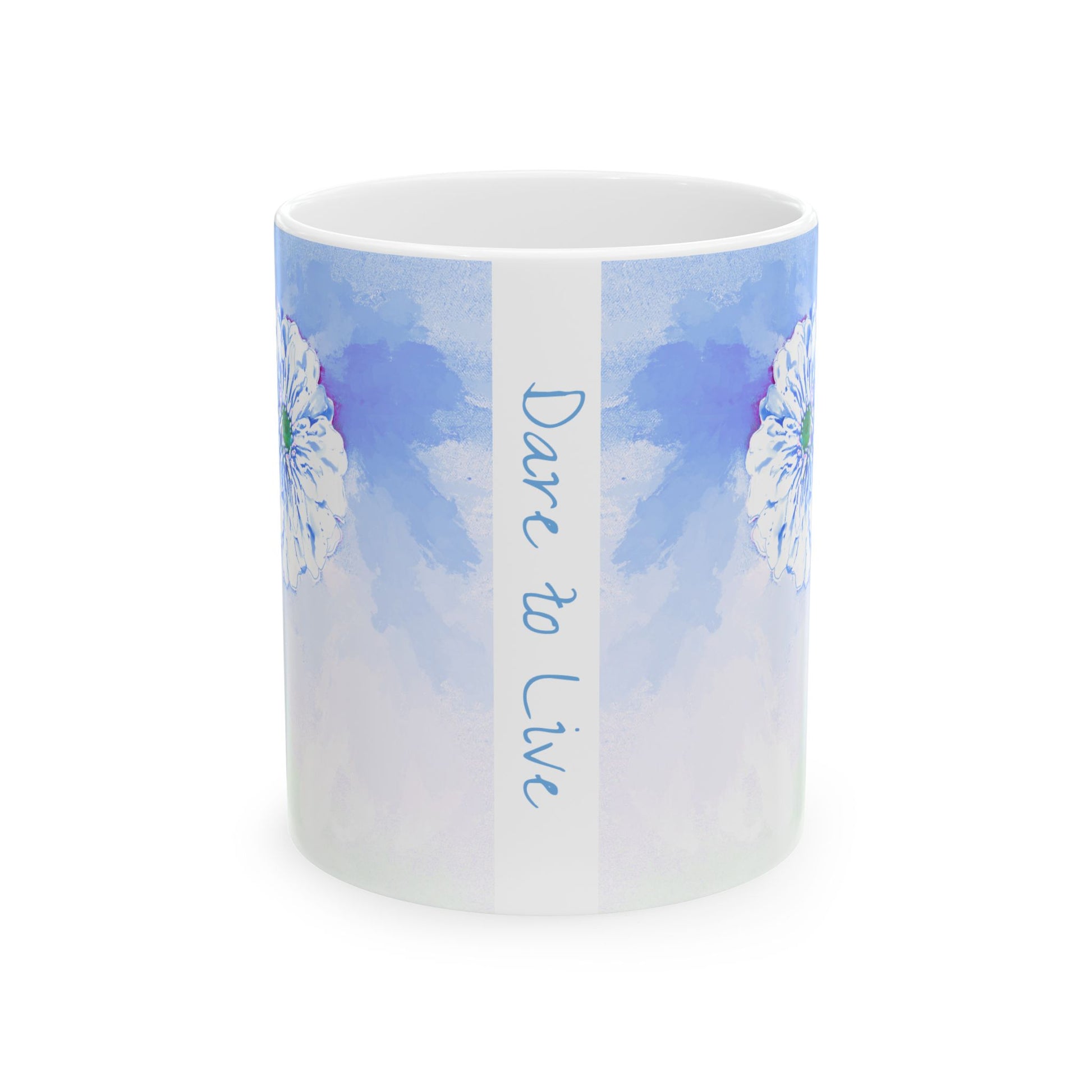 Zinnia Color Splash Mug Blue “Dare to Live”
