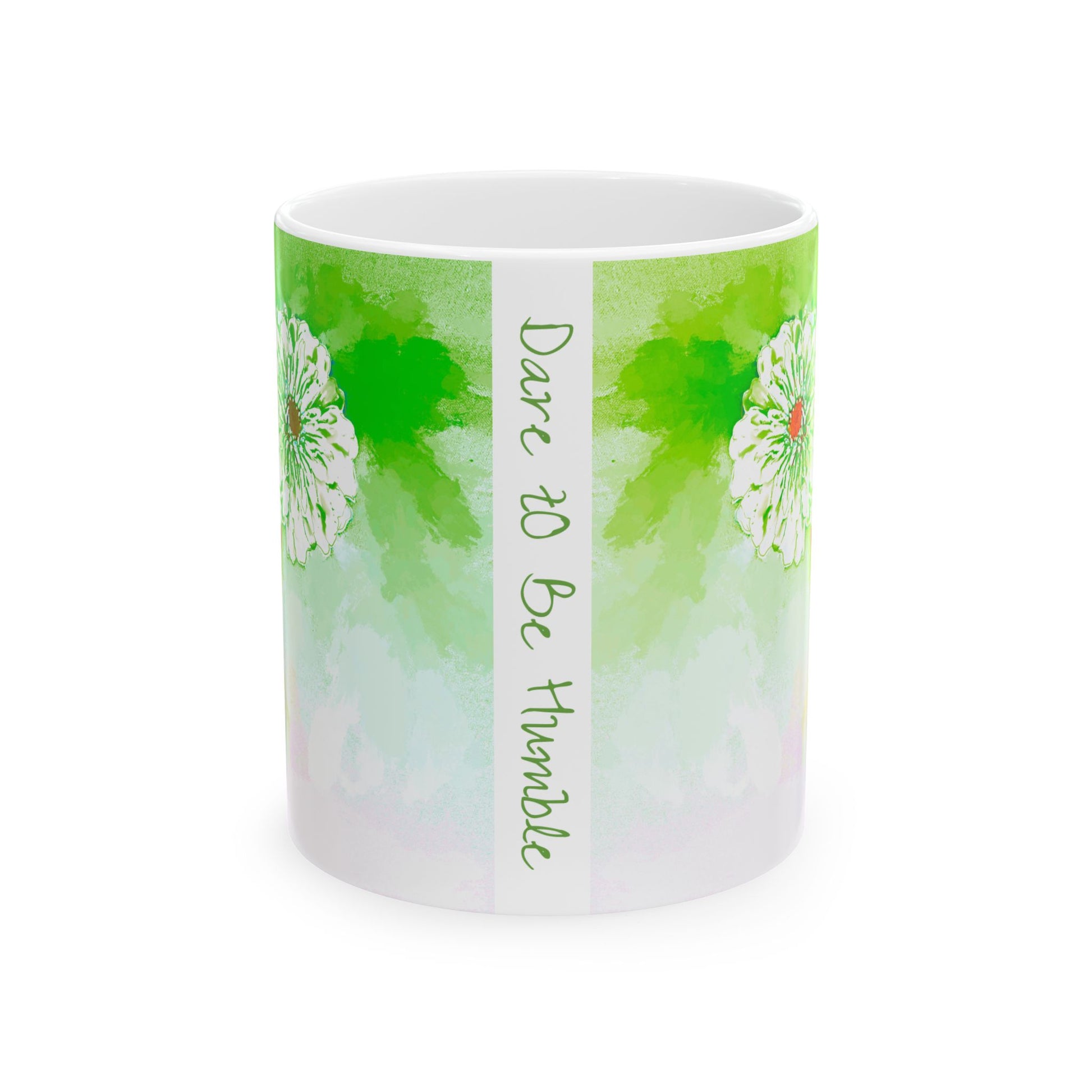 Zinnia Color Splash Mug Green “Dare to Be Humble”