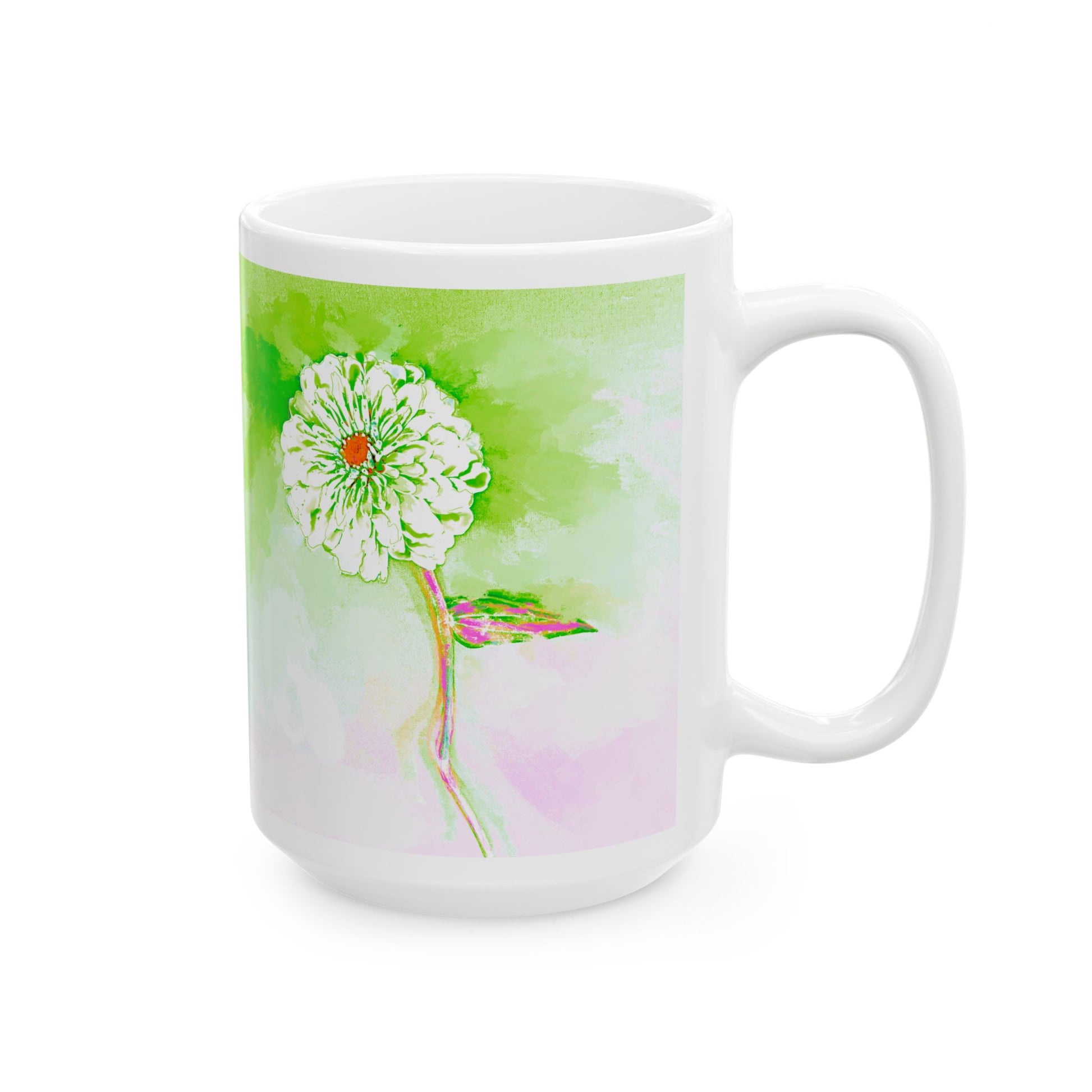 🌼 Periwinkles Design – “Abstract Zinnias & Conversation” Ceramic Mug