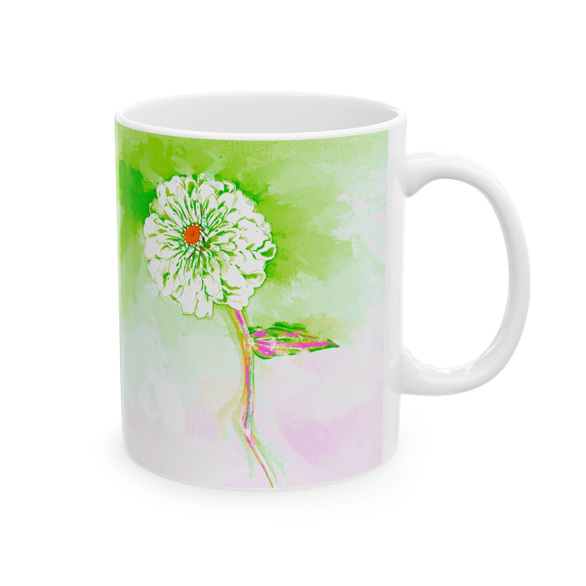 🌼 Periwinkles Design – “Abstract Zinnias & Conversation” Ceramic Mug