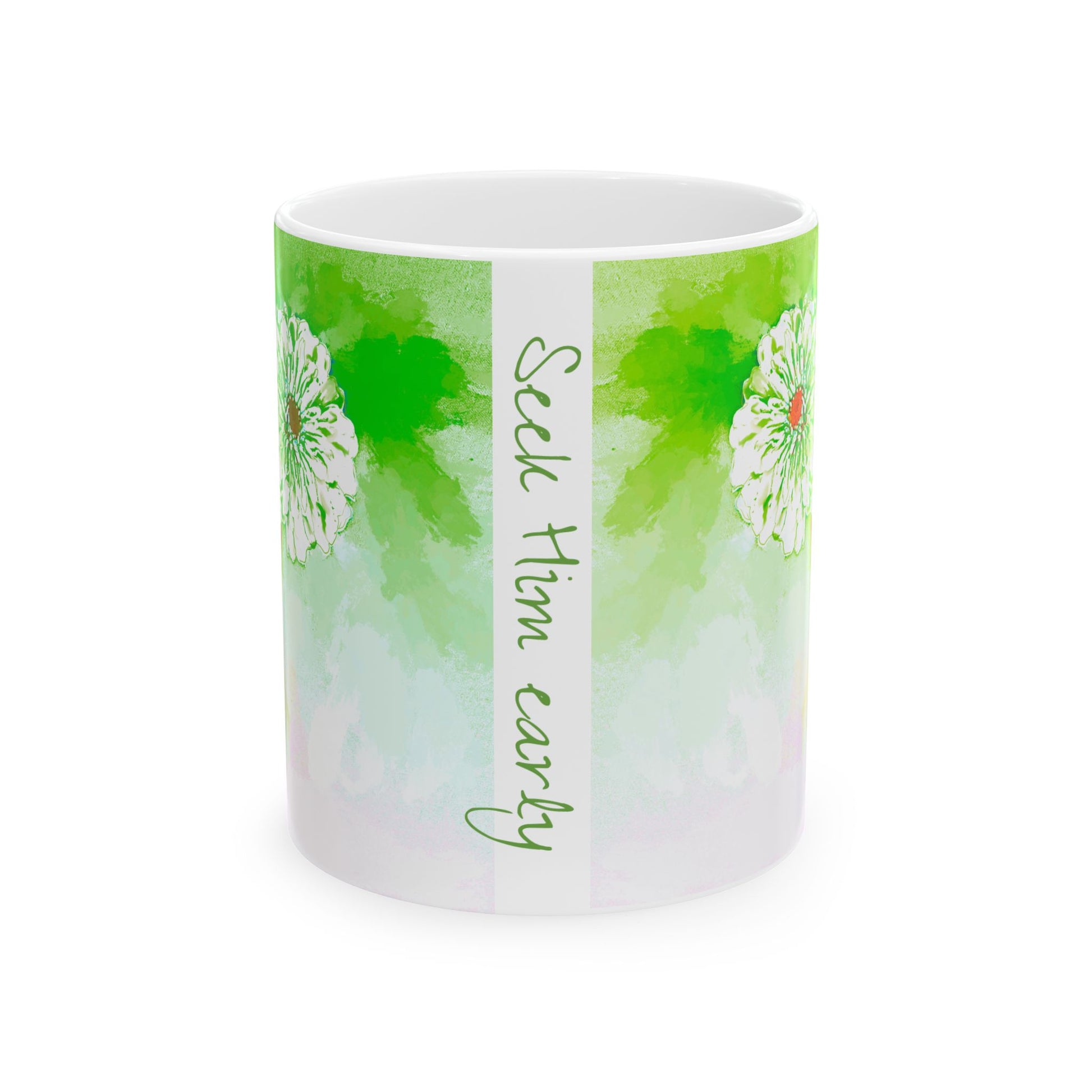 Zinnia Color Splash Mug in Green "Seek Him early"