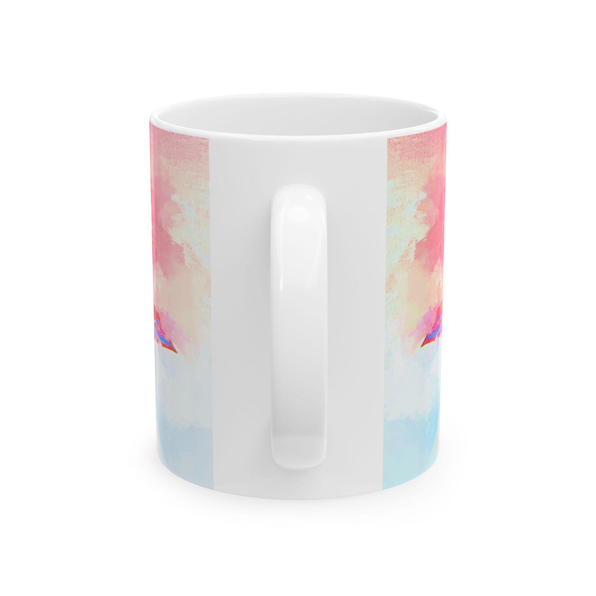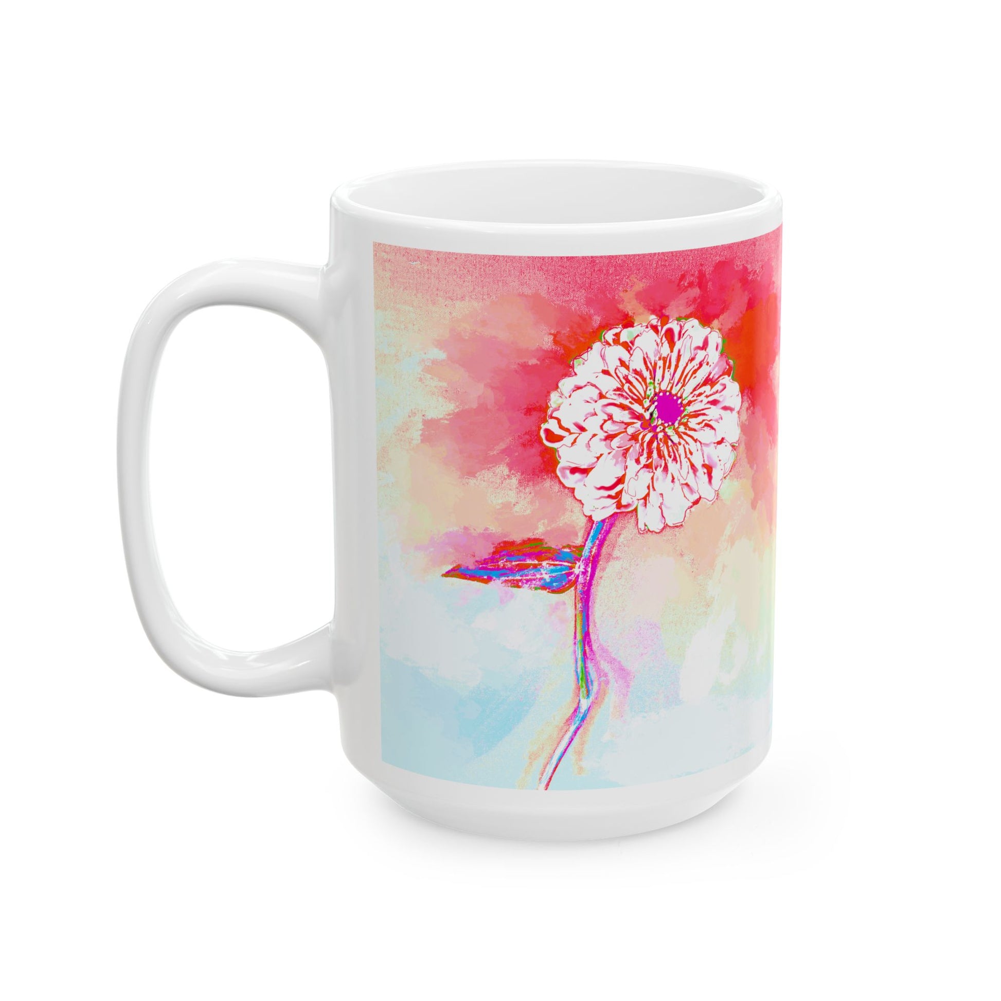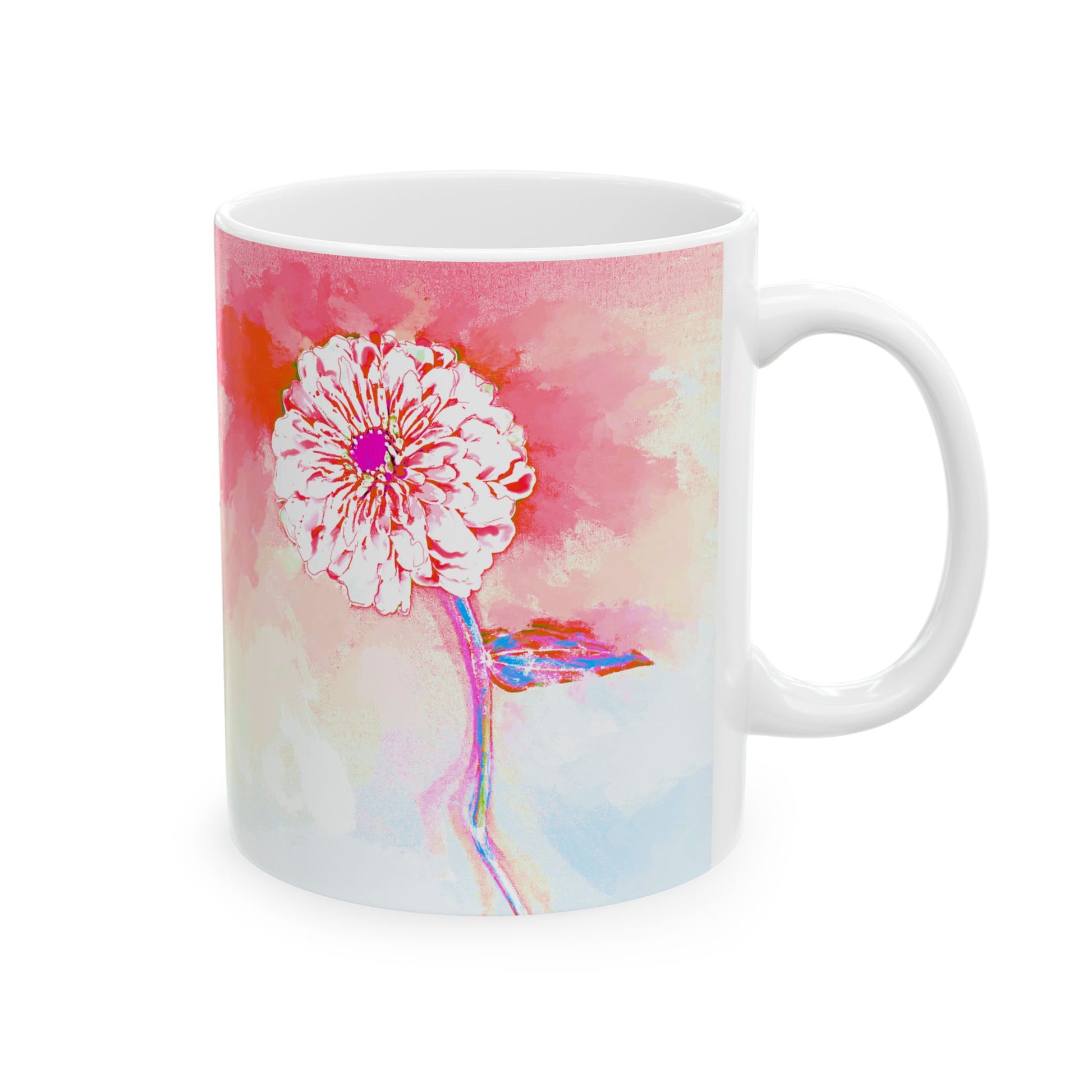 🌼 Periwinkles Design – “Abstract Zinnias & Conversation” Ceramic Mug