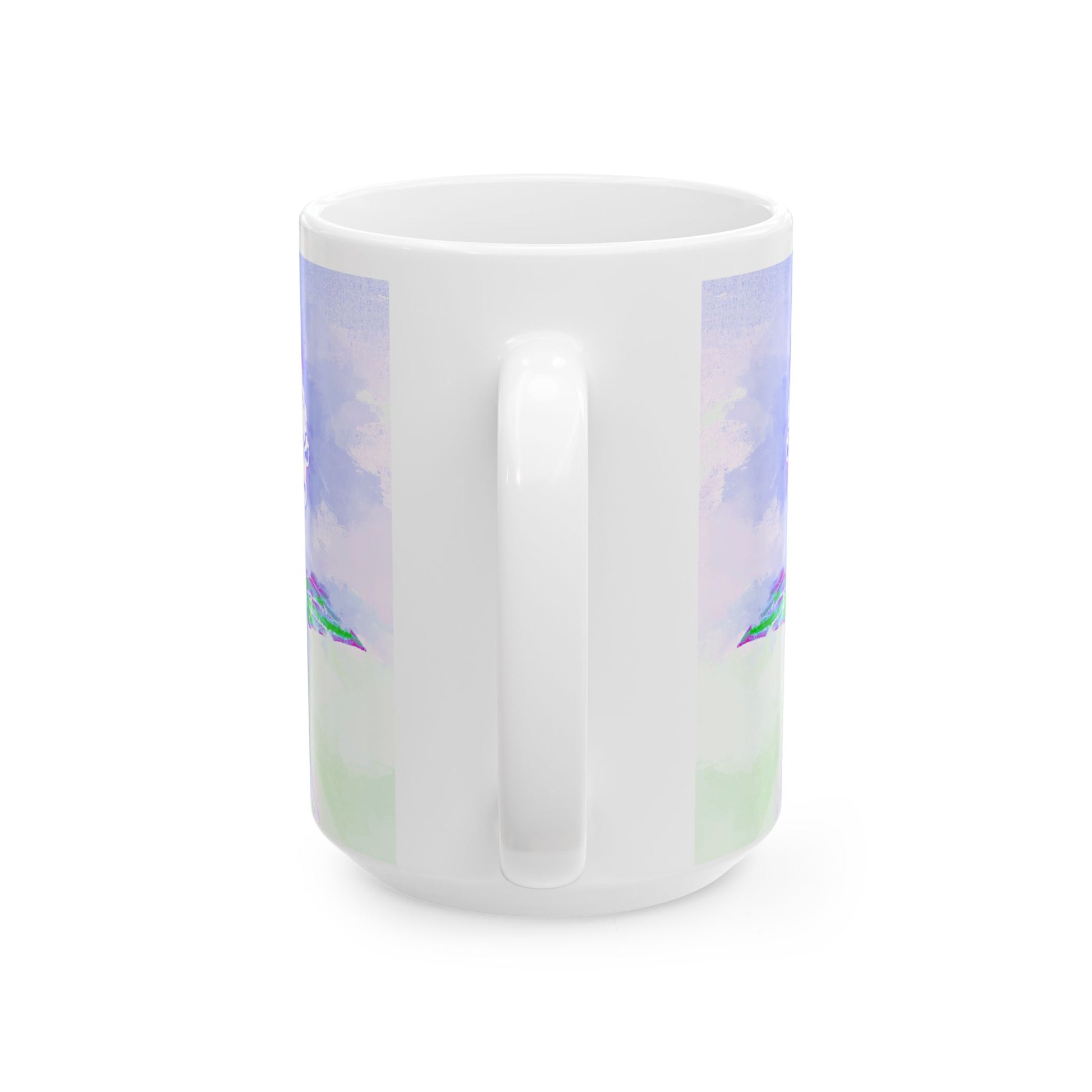 🌼 Periwinkles Design – “Abstract Zinnias & Conversation” Ceramic Mug