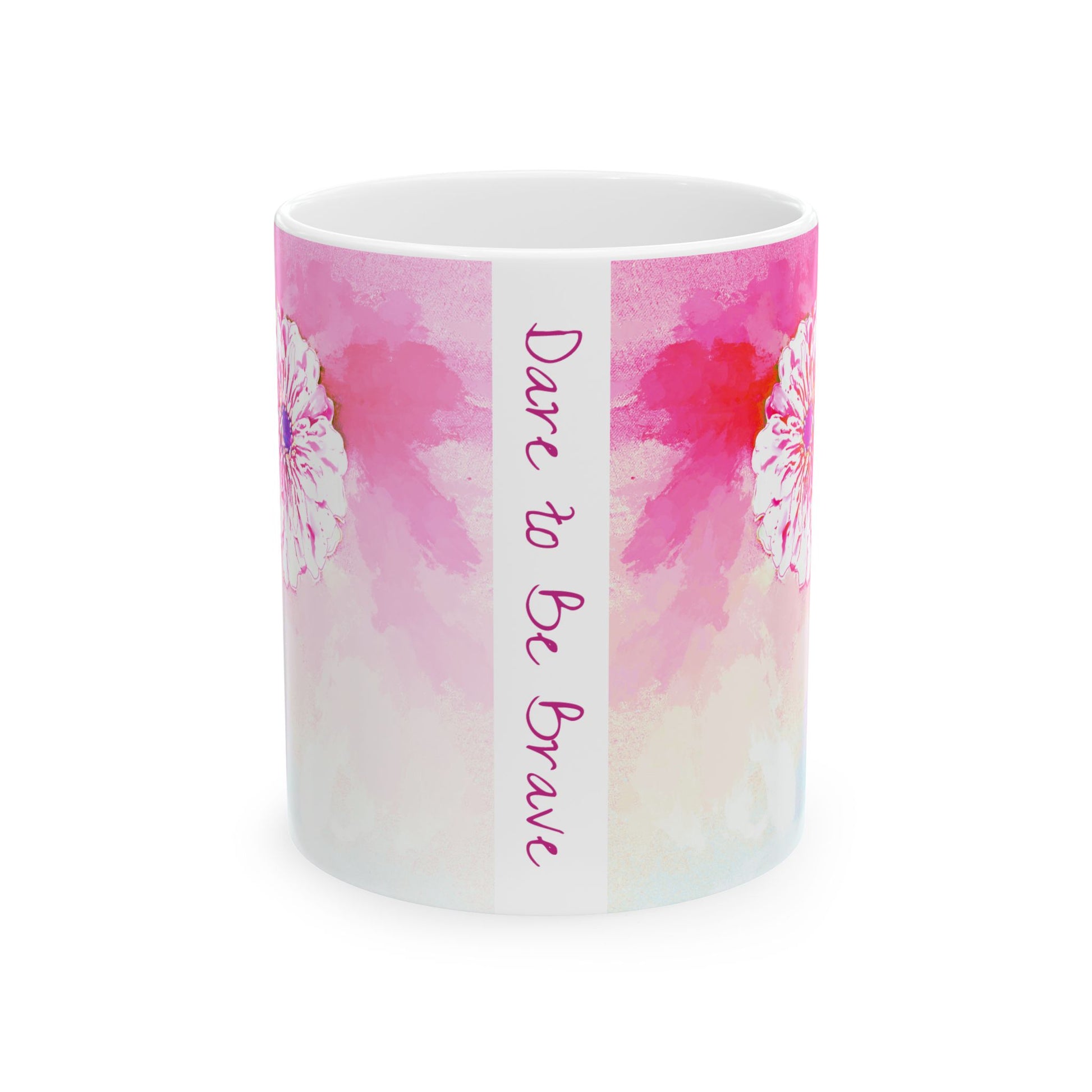 Zinnia Color Splash Mug Pink “Dare to Be Brave”