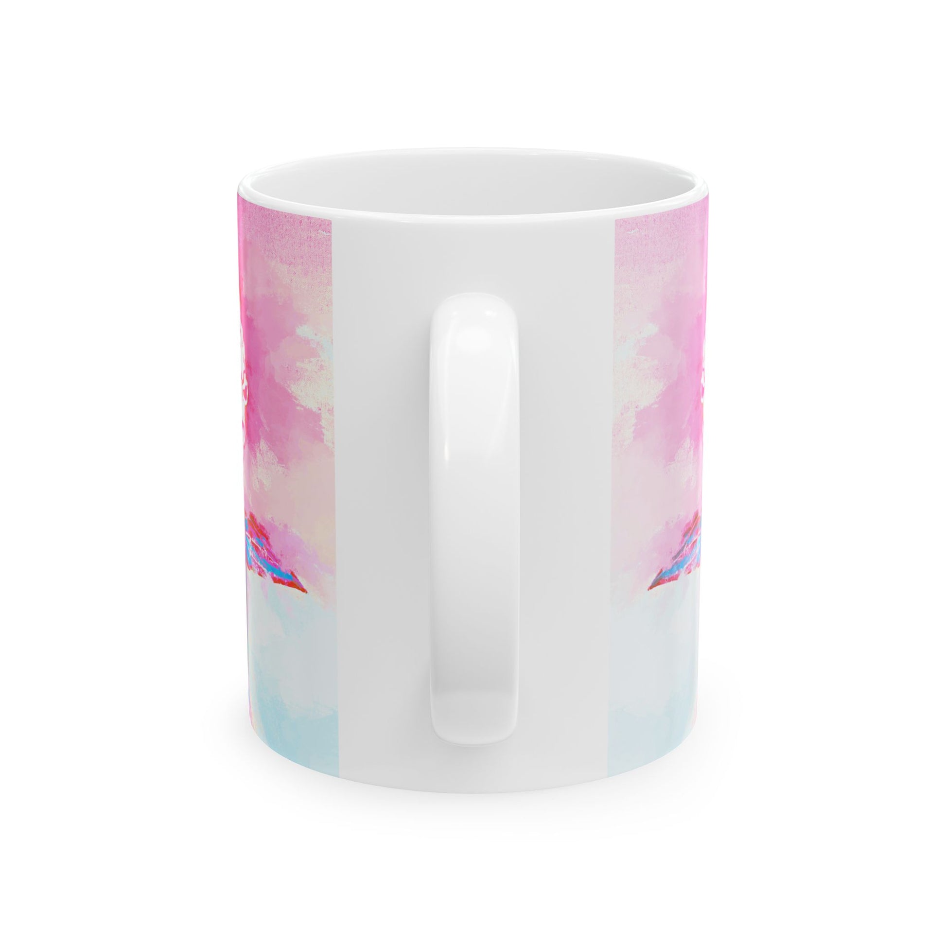 🌼 Periwinkles Design – “Abstract Zinnias & Conversation” Ceramic Mug