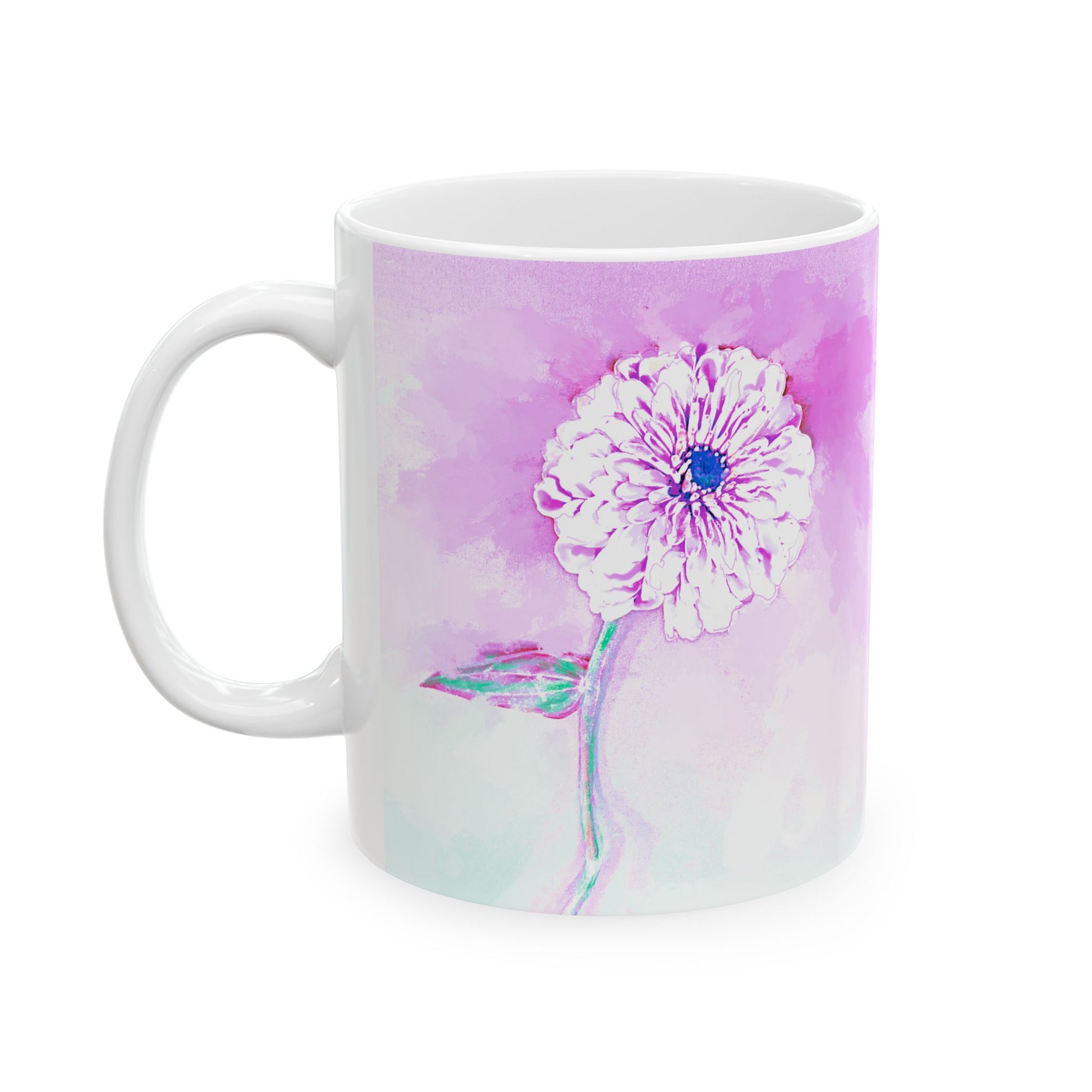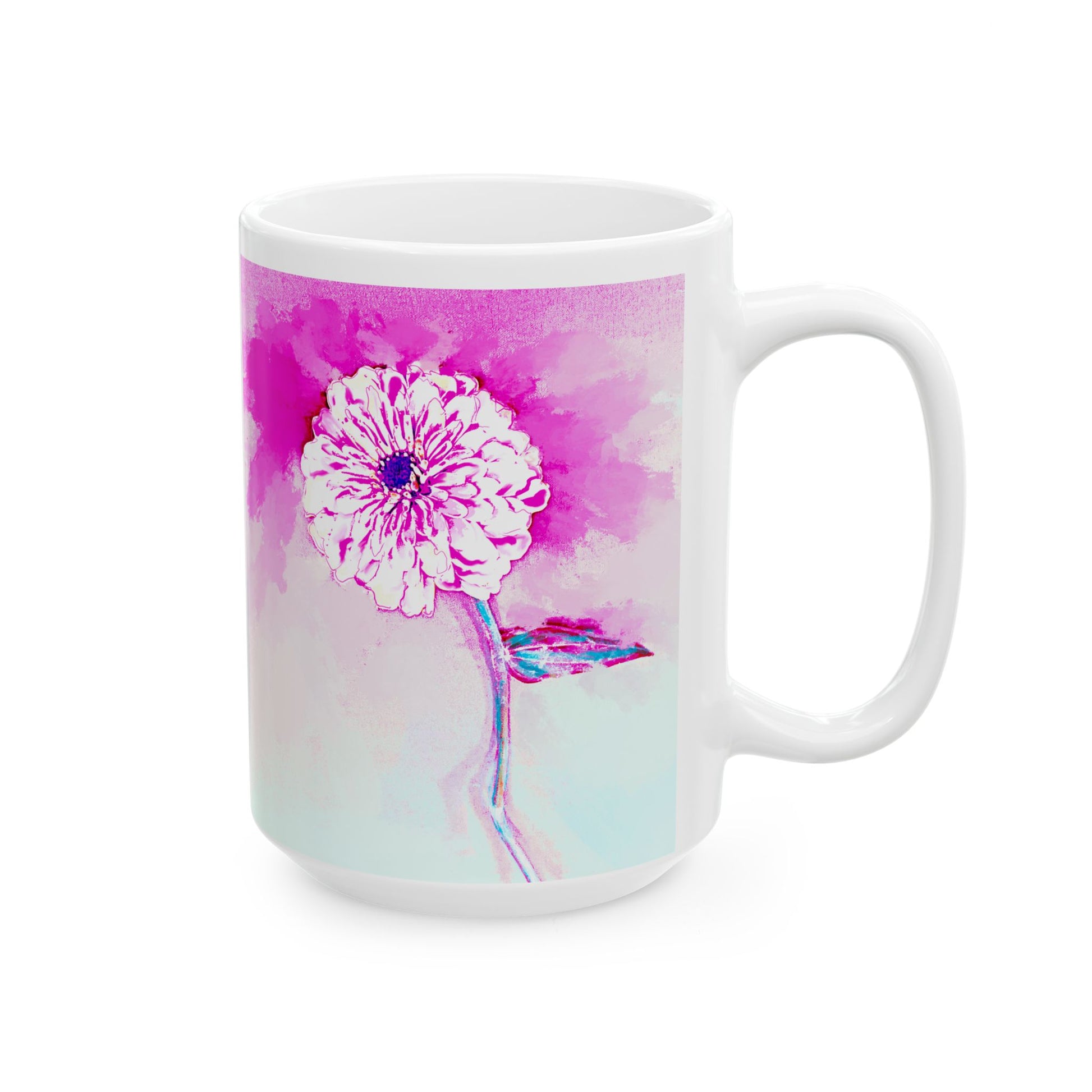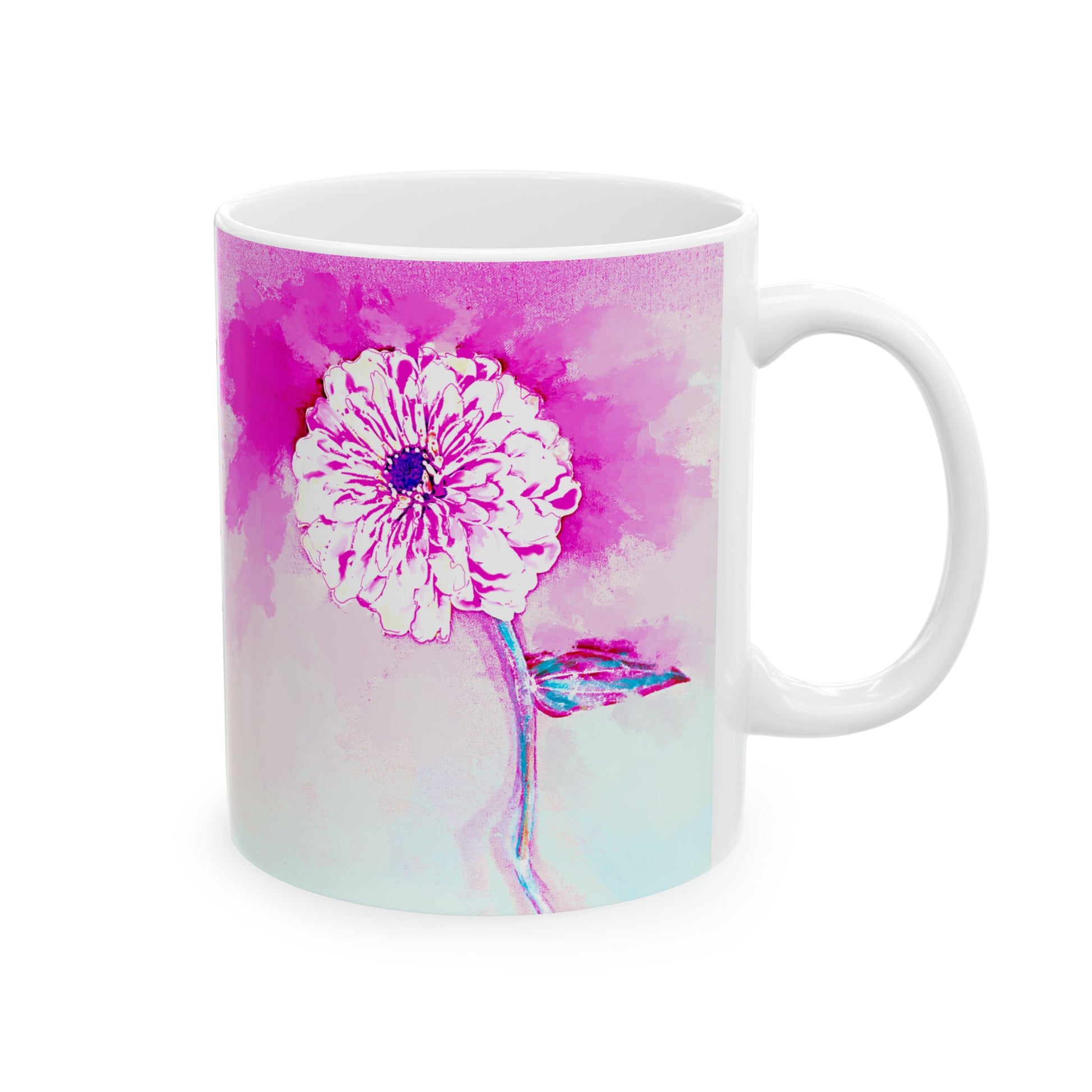 🌼 Periwinkles Design – “Abstract Zinnias & Conversation” Ceramic Mug