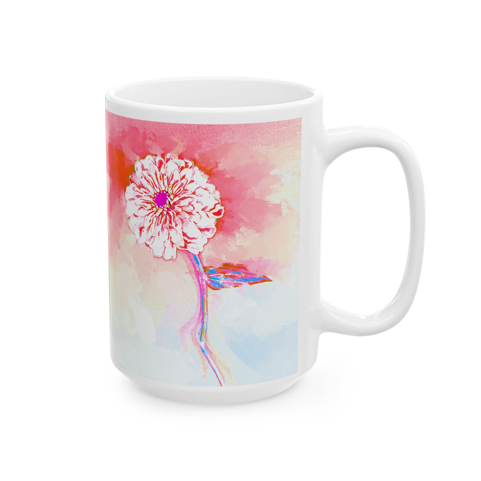 🌼 Periwinkles Design – “Abstract Zinnias & Conversation” Ceramic Mug