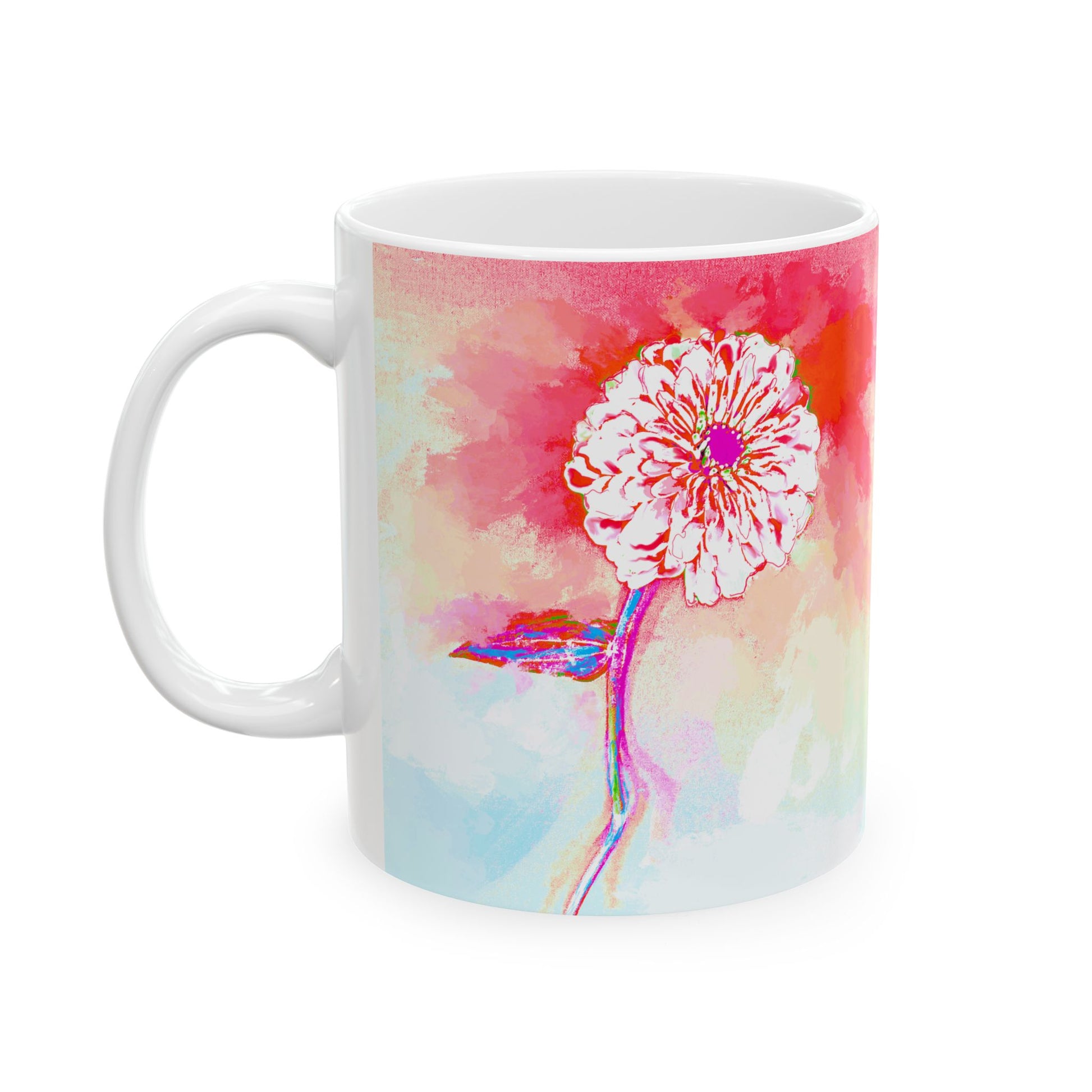 🌼 Periwinkles Design – “Abstract Zinnias & Conversation” Ceramic Mug